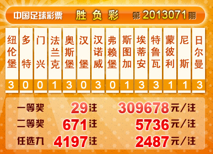 �����й������Ʊ��13071�ڿ���������һ�Ƚ� 29ע��ÿע 309678Ԫ�����Ƚ� 671ע��ÿע 5736Ԫ���������� 20,046,182Ԫ����ѡ9������������һ�Ƚ� 4197ע��ÿע 2487Ԫ���������� 16,312,490Ԫ��