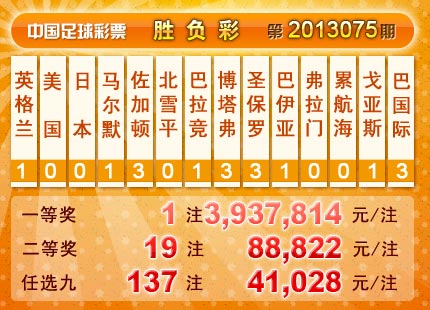 ��ǩ��ʤ����13075�ڿ���:һ�Ƚ�1ע ÿע3937814Ԫ