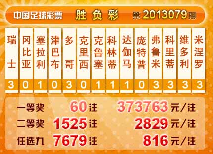 �����й������Ʊ��13079�ڿ���������һ�Ƚ�60ע��ÿע373763Ԫ�����Ƚ�1525ע��ÿע2829Ԫ����������22469976Ԫ����ѡ9������������һ�Ƚ�7679ע��ÿע816Ԫ����������9793696Ԫ��