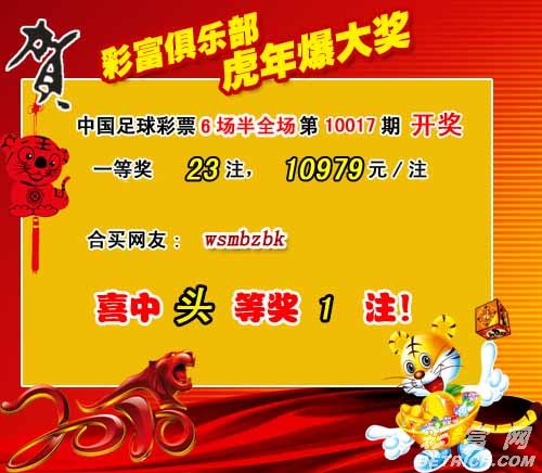 �����й������Ʊ6����ȫ����10017�ڿ�����һ�Ƚ�23ע��ÿע10979Ԫ������������319126Ԫ��
