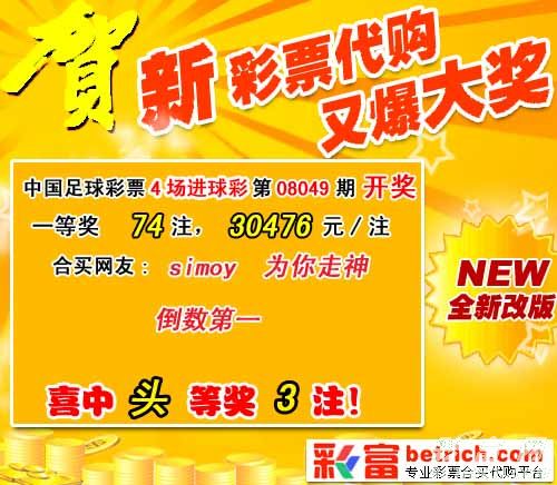 ���� 4������ʵ�08049�ڿ���������һ�Ƚ�74ע��ÿע30476Ԫ�����ڽ����������3523844Ԫ��