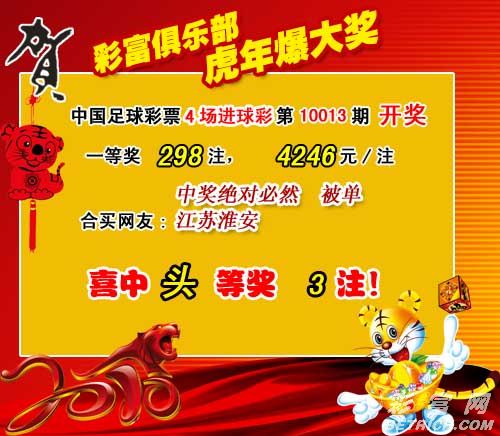 �����й������Ʊ4������ʵ�10013�ڿ���������һ�Ƚ�298ע��ÿע4246Ԫ�����ڽ����ȫ����������1,977,164Ԫ��