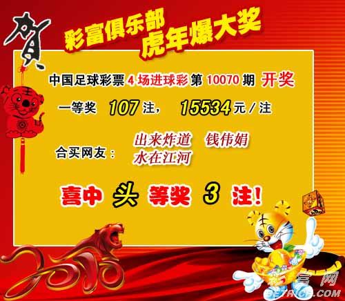 �����й������Ʊ4��������Ϸ��10070�ڿ���������һ�Ƚ�107ע��ÿע����15534Ԫ��
