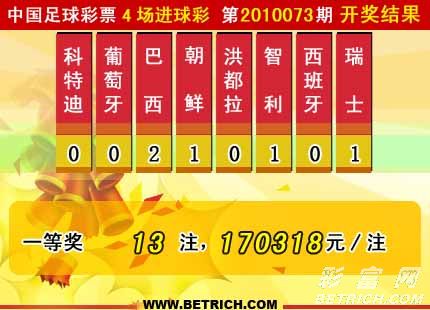 �����й������Ʊ4������ʵ�10073�ڿ���������һ�Ƚ�13ע��ÿע170318Ԫ������������ 3459604Ԫ��