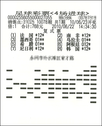 �����й������Ʊ4��������Ϸ��10078�ڿ���������һ�Ƚ�129ע��ÿע����16673Ԫ��