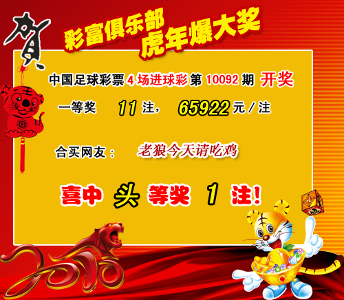 �����й������Ʊʤ���ʵ�10092����ѡ9������������һ�Ƚ�11ע��ÿע65922Ԫ��