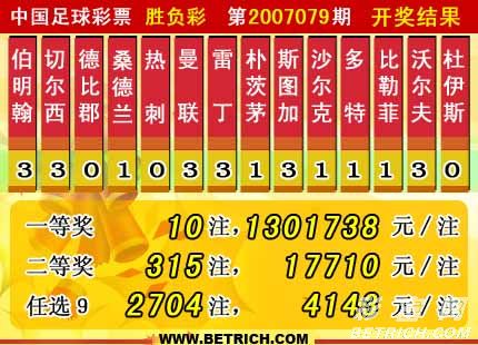 �����й������Ʊʤ���ʵ�07079����ѡ9������������һ�Ƚ�2704ע��ÿע4143Ԫ����������17506888Ԫ��