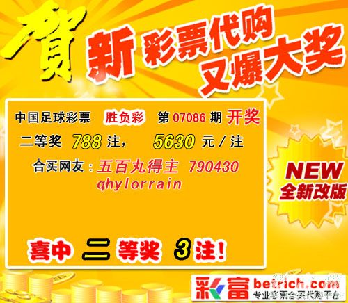 ��  �й������Ʊʤ���ʵ�07086�ڿ���������һ�Ƚ�26ע��ÿע575943Ԫ�����Ƚ�788ע��ÿע5630Ԫ����������23110144Ԫ��