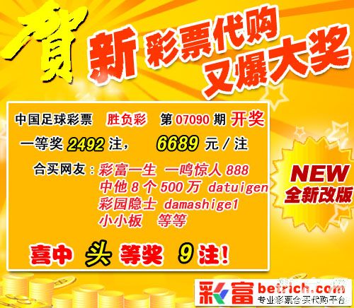 ����ʤ����07090�ڿ�����һ�Ƚ�2492ע��ÿע6689Ԫ��