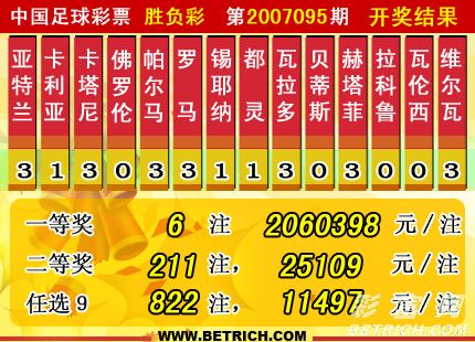 �����й������Ʊʤ���ʵ�07095�ڿ���������һ�Ƚ�6ע��ÿע2060398Ԫ�����Ƚ�211ע��ÿע25109Ԫ����ѡ9����һ�Ƚ�822ע��ÿע11497Ԫ����������14767598Ԫ��