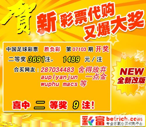 �����й������Ʊʤ���ʵ�07103�ڿ���������һ�Ƚ�99ע��ÿע129601Ԫ�����Ƚ�3691ע��ÿע1489Ԫ��