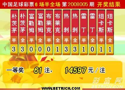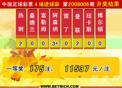 ���� 4������ʵ�08006�ڿ���������һ�Ƚ�175ע��ÿע11537Ԫ������ʤ����������3154702Ԫ��