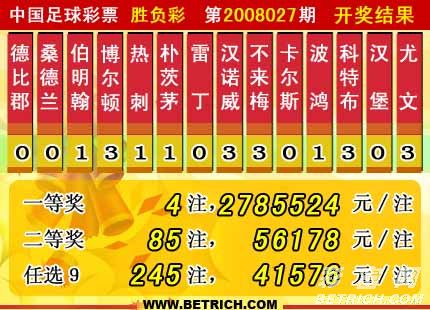�����й������Ʊʤ���ʵ�08027�ڿ���������һ�Ƚ�4ע��ÿע2785524Ԫ�����Ƚ�85ע��ÿע56178Ԫ����������24870754Ԫ��