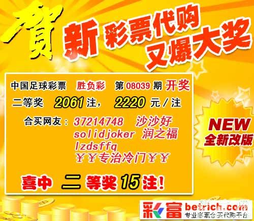 �����й������Ʊʤ���ʵ�08039�ڿ���������һ�Ƚ�98ע��ÿע108972Ԫ�����Ƚ�2061ע��ÿע2220Ԫ����������23837836Ԫ��