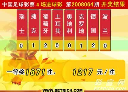 ���� ŷ��������ʵ�08064�ڿ���������һ�Ƚ�1871ע��ÿע1217Ԫ�����ڽ����ȫ����������3559944Ԫ��ŷ����8ǿ��Ϸ����ȫ����������8582086Ԫ��