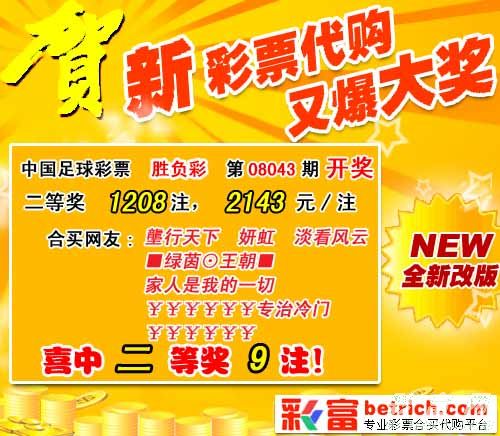 �����й������Ʊʤ���ʵ�08043�ڿ��������Ƚ�1208ע��ÿע2143Ԫ��
