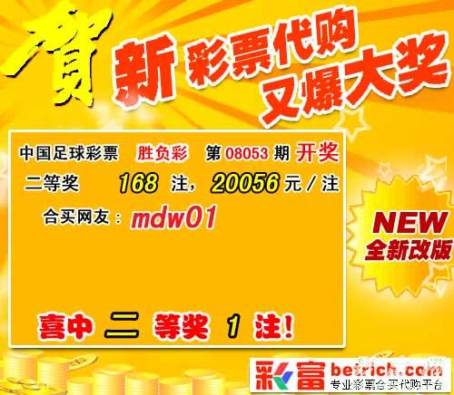 �����й������Ʊʤ���ʵ�08053�ڿ�����һ�Ƚ�7ע��ÿע����1123148Ԫ�����Ƚ�168ע��ÿע20056Ԫ��