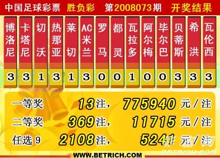 �����й������Ʊ��08073�ڿ���������һ�Ƚ�13 ע��ÿע775940 Ԫ�����Ƚ�369 ע��ÿע 11715Ԫ����������22516140Ԫ��08073����ѡ9������������һ�Ƚ�2108 ע��ÿע5241 Ԫ����������17265382Ԫ��