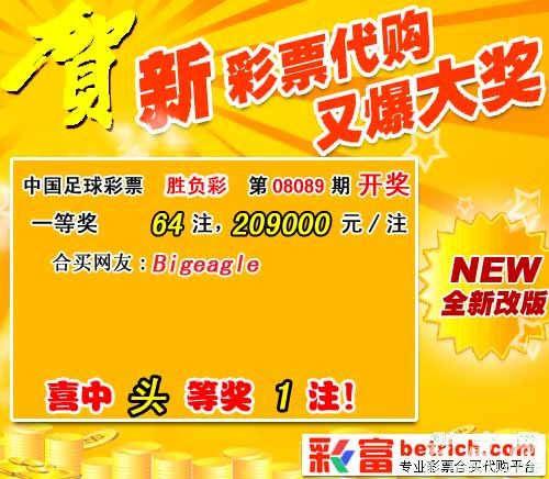 �����й������Ʊʤ���ʵ�08089�ڿ���������һ�Ƚ�64ע��ÿע����209000Ԫ��