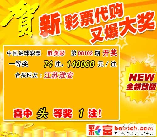 �����й������Ʊʤ���ʵ�08102�ڿ�������:һ�Ƚ�74ע��ÿע140000Ԫ�����Ƚ�1586ע��ÿע2799Ԫ������ʤ����ȫ����������23125110Ԫ��