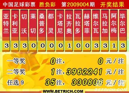 �����й������Ʊʤ���ʵ�09004�ڿ�������:һ�Ƚ������У�9245229.95Ԫ��������һ�Ƚ����أ����Ƚ�1ע��ÿע3962241Ԫ������ʤ����ȫ����������20636674Ԫ��