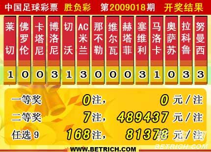 �����й������Ʊ��09018�ڿ���������һ�Ƚ�0 ע��ÿע0 Ԫ�����Ƚ�7 ע��ÿע489437 Ԫ����������17844072Ԫ,7994144.26Ԫ���档��ѡ9������������һ�Ƚ�168 ע��ÿע81378 Ԫ����������21361964Ԫ��