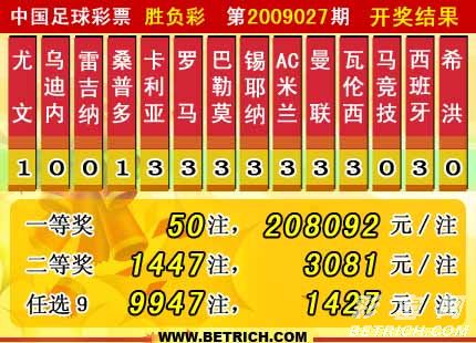 �����й������Ʊʤ���ʵ�09027����ѡ�ų�����������һ�Ƚ�9947ע��ÿע1427Ԫ��������ѡ�ų�������Ϊ��22184734Ԫ��