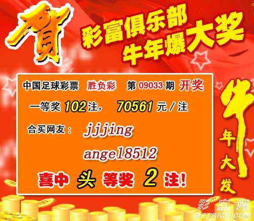 �����й������Ʊ��09033�ڿ���������һ�Ƚ�102ע��ÿע70561Ԫ�����Ƚ�2611ע��ÿע1181Ԫ����������16065398Ԫ��