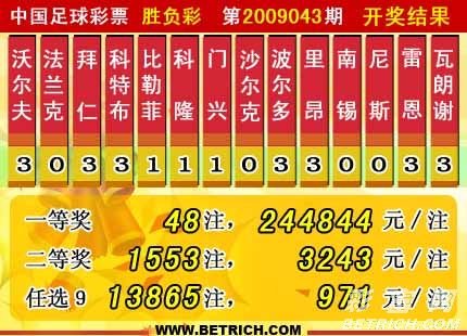 �����й������Ʊ��09043�ڿ���������һ�Ƚ�48ע��ÿע244844Ԫ�����Ƚ�1553ע��ÿע3243Ԫ����������26233294Ԫ����ѡ9������������һ�Ƚ�13865ע��ÿע971Ԫ����������21037044Ԫ��
