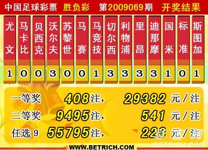�����й������Ʊ��09069�ڿ���������һ�Ƚ�408 ע��ÿע29382 Ԫ�����Ƚ�9495 ע��ÿע 541Ԫ����������26759074Ԫ����ѡ9������������һ�Ƚ�55795 ע��ÿע223 Ԫ����������19458298Ԫ��
