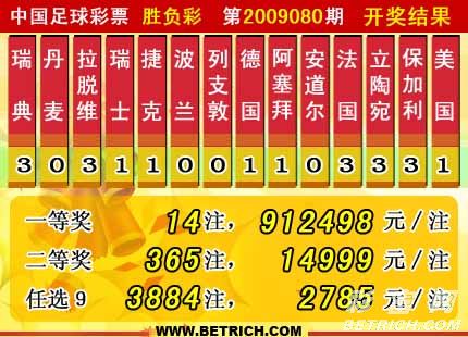 �����й������Ʊ��09080�ڿ���������һ�Ƚ�14 ע��ÿע 912498Ԫ�����Ƚ�365 ע��ÿע 14999Ԫ����������28515580Ԫ����ѡ9������������һ�Ƚ� 3884ע��ÿע2785 Ԫ����������16903542Ԫ��