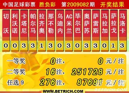 �����й������Ʊʤ����09082��14��ʤ����Ϸ����������һ�Ƚ������У�9397851.01Ԫ���档���Ƚ�16ע��ÿע251728Ԫ������ʤ����ȫ����������20977346Ԫ����ѡ9������������һ�Ƚ�276ע��ÿע����87681Ԫ������21739ԪΪ���ͽ��𡣱�����ѡ�ų���������28437822Ԫ��