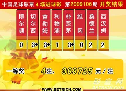 ���� �й������Ʊ4������ʵ�09106�ڿ���������һ�Ƚ� 4ע��ÿע 309725Ԫ������������1935786Ԫ��