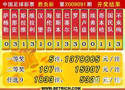 �����й������Ʊ��09091�ڿ���������һ�Ƚ�5ע��ÿע1379665Ԫ�����Ƚ�197ע��ÿע15007Ԫ���������� 15398056 Ԫ����ѡ9������������һ�Ƚ�1833ע��ÿע5326Ԫ���������� 15254116 Ԫ��
