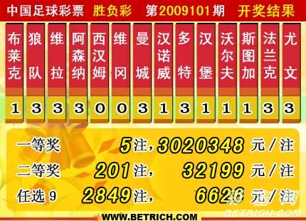 �����й������Ʊʤ���ʵ�09101�ڿ���������һ�Ƚ�5ע��ÿע3020348Ԫ�����Ƚ�201ע��ÿע32199Ԫ������ʤ����ȫ��������Ϊ��33709246Ԫ����ѡ9������������һ�Ƚ�2849ע��ÿע6626Ԫ��������ѡ9��ȫ��������Ϊ29498720Ԫ��