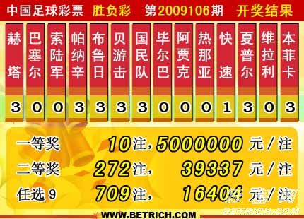 �����й������Ʊ��09106�ڿ���������һ�Ƚ�10ע��ÿע5000000Ԫ�����Ƚ�272ע��ÿע39337Ԫ����������55727952Ԫ��15180597.77Ԫ���浽����Ӣ������С���ѡ9������������һ�Ƚ�709ע��ÿע16404Ԫ����������18173406Ԫ��