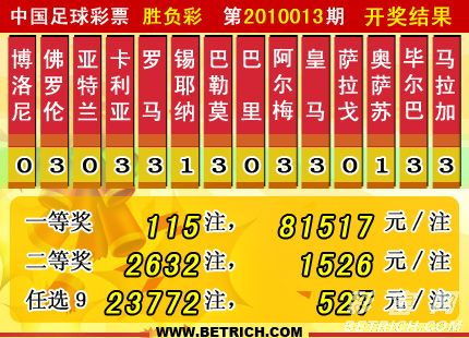 �����й������Ʊ��10013�ڿ���������һ�Ƚ�115ע��ÿע81517Ԫ�����Ƚ�2632ע��ÿע1526Ԫ����������20925270Ԫ����ѡ9������������һ�Ƚ�23772ע��ÿע527Ԫ����������19577904Ԫ��