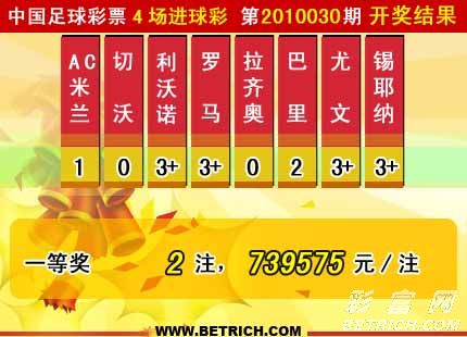 �����й������Ʊ4������ʵ�10030�ڿ���������һ�Ƚ�2ע��ÿע739575Ԫ�����ڽ����ȫ��������2077018Ԫ��