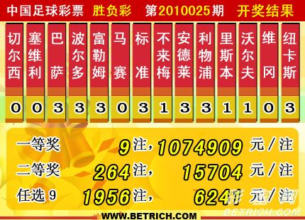 �����й������Ʊ��10025�ڿ���������һ�Ƚ�9ע��ÿע1074909Ԫ�����Ƚ�264ע��ÿע15704Ԫ����������21594156Ԫ����ѡ9������������һ�Ƚ�1956ע��ÿע6241Ԫ���������� 19076638Ԫ��