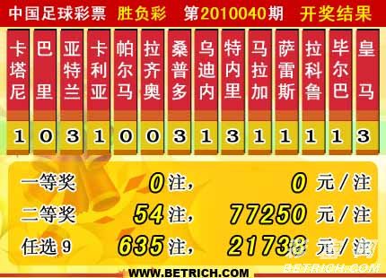 �����й������Ʊʤ���ʵ�10040�ڿ���������һ�Ƚ������У�9733614.46Ԫ��������ͷ������(����Ӣ�²�)�����Ƚ�54ע��ÿע����77250Ԫ����ѡ9������������һ�Ƚ�635ע��ÿע21738Ԫ����������21568714Ԫ��