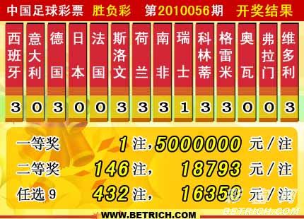 �����й������Ʊ��10056�ڿ���������һ�Ƚ�1ע��ÿע5000000Ԫ�����Ƚ�146ע��ÿע18793Ԫ����������14291182Ԫ����ѡ9������������һ�Ƚ�432ע��ÿע16350Ԫ����������11036296Ԫ��