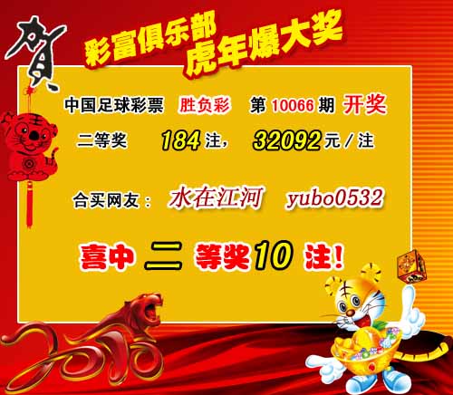 �����й������Ʊ��10066�ڿ���������һ�Ƚ�5ע��ÿע5000000Ԫ�����Ƚ�184ע��ÿע32092Ԫ����������30755274Ԫ��