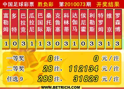 �����й������Ʊ��10073�ڿ���������һ�Ƚ���ȱ�����Ƚ�28ע��ÿע112134Ԫ����������16352978Ԫ����ѡ9������������һ�Ƚ�288ע��ÿע31823Ԫ����������14320658Ԫ��