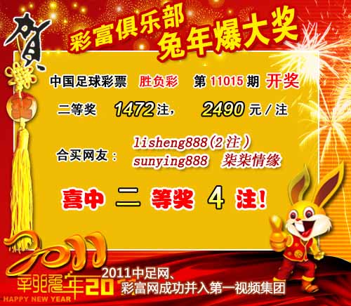 ����2011015��ʤ���ʿ��������Ƚ�1472ע��ÿע����2490Ԫ��