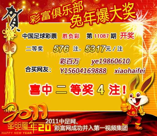 ��������ʱ��8��29�գ�ʤ����11087�ڿ������������һ�Ƚ�19ע��ÿע����376143Ԫ�����Ƚ�576ע��ÿע5317Ԫ������Ͷע�ܶ�15,952,528Ԫ��