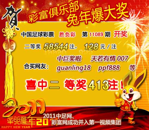 �����й������Ʊ��11089�ڿ���������һ�Ƚ�3207ע��ÿע5452Ԫ�����Ƚ�58544ע��ÿע128Ԫ����������39033082Ԫ����ѡ9������������һ�Ƚ�192493ע��ÿע53Ԫ����������16069720Ԫ��