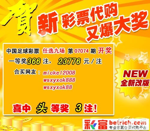 �����й������Ʊʤ���ʵ�07074����ѡ9������������һ�Ƚ�ÿע23776Ԫ��
