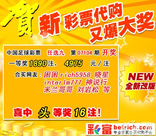 �����й������Ʊʤ���ʵ�07104����ѡ�ų�����������һ�Ƚ�1890ע��ÿע4975Ԫ��