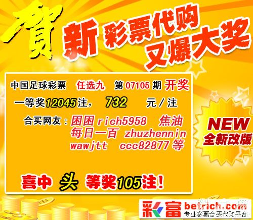 �����й������Ʊʤ���ʵ�07105����ѡ9������������һ�Ƚ�12045ע��ÿע732Ԫ��