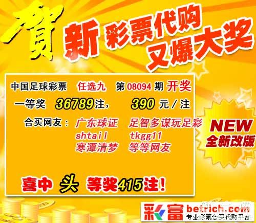 08094����ѡ9������������һ�Ƚ�36789 ע��ÿע390 Ԫ����������22452912Ԫ��